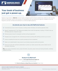 The first time you visit American Equity’s MyPortal, you’ll be asked to register for the new site. The process is straightforward and simple: you’ll be asked to provide your agent number and your existing password, and then prompted to set a new password and enter a security question. That’s it!
